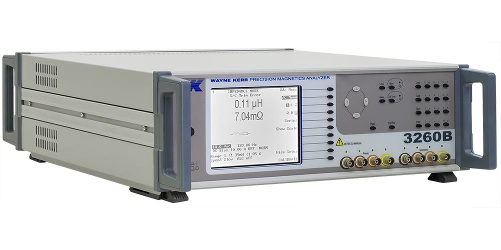 25 A of DC bias current can be set in steps of 0.025 A with one unit whilst up to five units can be used in parallel to give up to 125 A DC bias current. The standard 3260B Precision Magnetics Analyzer can provide an internal DC bias from 1 mA to 1 A.